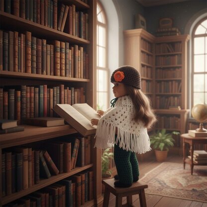 Crochet doll clothes pattern for the 18” inch doll. She will be in style this fall, or even during the winter months. This doll poncho is sure to be a hit with any doll lover. The pattern is all written in US terminology. Instructions are for the poncho, hat, shoes, and pants. They make for great gifts to any little one. Add your own touch to this outfit, with different colors, embellishments, etc. give it your personal touch. It can be made in any color. Does not take up much yarn at all, so it’s great for getting rid of your scrap yarn, or small balls. It is made with worsted weight yarn.