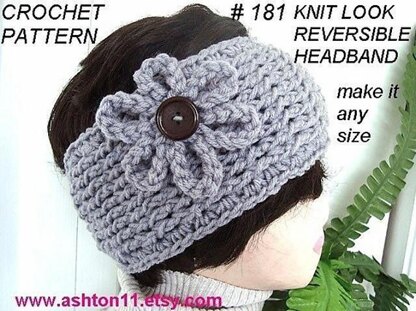 This is a KNIT LOOK, headband,... BUT IT IS CROCHETED. See the photos to see how it looks on each side, you can wear it with either side out.