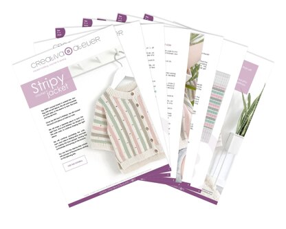 The jacket shown in the images is size 3-4 years. For other sizes, the number and arrangement of stripes may change. The color scheme for this size is detailed in the pattern.