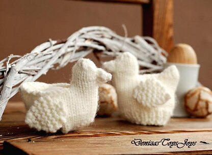 2 chickens for keeping warm breakfast eggs. Easter pattern. Materials needed • 4 double-pointed needles in a size suitable for the yarn weight you are using. I recommend using needles a size or two smaller than the yarn calls for, to produce a firm fabric. İ used Needles size 4 (3,5mm) • White yarn for chickens. I used Nako Moher Special ( 3 threads together ) • Toy stuffing • Yarn needle • Stitch holder