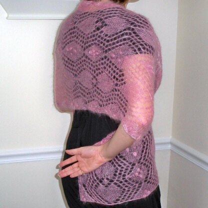 Make this wrap for yourself or someone you care about. This would make a wonderful wedding shawl in white or Bridesmaid shawl in wedding colors. I made this wrap out of lace weight Kid Seta yarn which is 70% kid Mohair and 30% silk to give it that extra shine. It is the perfect accent to any outfit and would work at any time of year. This wrap is for the knitter that likes the challenge of nupps. It can be made without nupps by doing a knit stitch in nupp stitch and a purl in the pNtog stitch The pattern has both written instructions and charts to follow. Contact information is on pattern if you have any problems, feedback or just want to show me how beautiful it looks. With the nupps, this pattern is for the experienced knitter. Without the nupps, this pattern is for the intermetiate knitter. After the first few rows, this patterns works up easily. This patterns took 2 skeins of Kid Seta