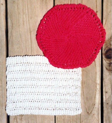 Two dishcloth patterns for one low price! Knit these up fast for bazaar sellers! These also make great tuck in gifts for Christmas stockings and more! Why not knit up either style and place by glass at your next dinner party! Your guests will be able to take one home to remember their fun! Both use an easy textured stitch pattern. One is octagon shape, knit in once piece on single point needles. There is an easy knit on border edging on this one too! This may be omitted if desired. The other pattern has an easy stitch that can be made up in several hours! Both use worsted weight cotton yarns, knitting needles, US # 8. Sizes are 8 diameter or 7 by 9 size. Knit up both!