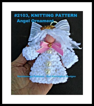 Knitting Pattern - Angel Ornament. Make any size by changing needle size. Pattern includes links to learn how to knit! Click here to enter my RAVELRY PATTERN STORE: http://www.ravelry.com/designers/emi-harrington . Very quick and easy! Aimed at beginners to knitting. . You will need: Worsted weight yarn, (Red Heart or Bernat) 4 mm or 6 mm needles Glue, (or it could be sewn together) . Cute hostess gift, gift topper, tree ornament. / ALL MY KNITTING PATTERNS ON RAVELRY: http://www.ravelry.com/patterns/search#view=captioned_thu...