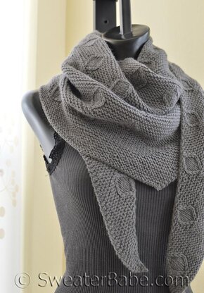 This asymmetrical triangular shawl begins at one corner with some basic increases, decreases, and all Garter stitch. Once the shaping is nicely established (and you've learned the simple increase pattern), it will continue as the columns of teardrop shapes get incorporated.