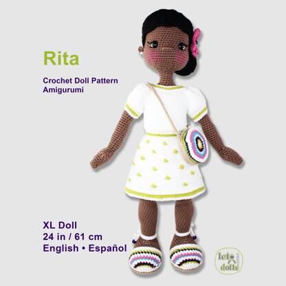 24 inch crochet doll pattern PDF, XL amigurumi doll, Rita