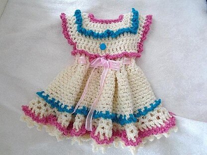 CROCHET PATTERN, Baby Dress, Girl's Dress, Pink and Blue Frills, Newborn to 6 years, #244-L, Easy Pattern, crochet for baby. Make this crochet pattern for the sweet new baby in your life.