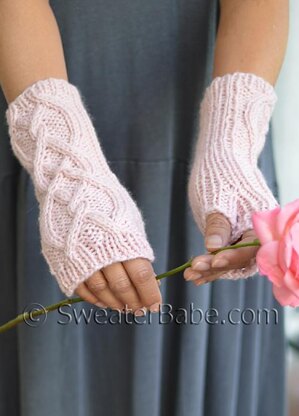 The pretty braided cable runs the length of the gloves. The shorter version just covers your wrists and can be tucked into the sleeves of your winter coat. A slightly longer version is included as well.