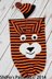 Sizes 3: preemie 0 - 3 months, 3 - 6 months Materials: UK-DK, USA-Light Worsted (3), AU-8ply Cocoon Orange- 67g, 85g, 125g Black- 77g, 85g, 110g Chin and cheeks and eyes White-6g, 20g, 24g Mouth-black scrap Hat Orange-20g, 22g, 24g Black-25g, 27g, 30g 2 x 23mm black buttons for eyes Knitting needles 3.75mm