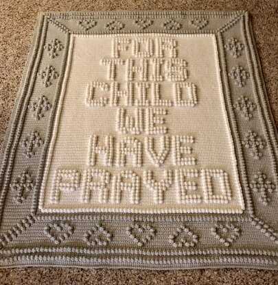 Blanket reads FOR THIS CHILD WE HAVE PRAYED