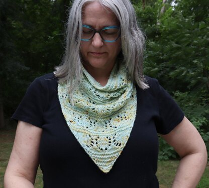 The 30 Rising Suns is a cowl, but it looks like a shawl when worn. It will not fall off your shoulders the way a shawl does, so you don’t have to keep fussing with it or use a shawl pin to keep it on. The 30 Rising Suns Cowl is worked flat from the bottom up. The cowl begins with a few stitches that give the tip a gentle curve. Two stitches are added on every right side row. Once the cowl width is reached, you’ll have a choice to continue working flat and seaming the back neck edge or finishing the cowl in the round. The last segment features a few repeats of a garter-striped pattern that adds an interesting texture and clean lines. Finishing the cowl is quick and easy with a slim 2-stitch i-cord bind-off.