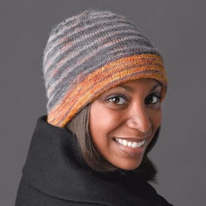 Technically this hat could be called the Silver or Gold Lining Hat, since it's completely reversible. This hat is actually made in a capsule shape, then one end is inverted to make a warm and versatile double-layered hat with no tight bound off or cast on edges at the brim.
