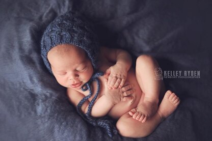 Description: This is a PDF knitting PATTERN for a gorgeous cabled bonnet for use as a newborn photography prop. It is written in standard american terms with some photos to help with sizing of the hat. This pattern is knitted on 2 straight needles so no complicated knitting in the round!