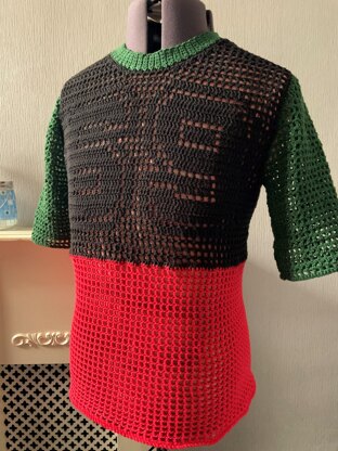 This crochet pattern is for a man’s mesh top that can be made in 4 different ways, starting with a basic crop top, a crop top with sleeves, a tank top and finally a full T-Shirt. Each element is fully described and finished so you can choose how much or how little you show off. The design features classic sport numbers using the filet crochet method. All numbers are charted so you can choose your own design. Instructions are given, although some knowledge of the filet crochet method would be helpful. The pattern has details for two sizes (Large and XL). The instructions are colour coded for the different sizes. I assume you are likely to make the shirt all in one colour rather than three. I have used DK cotton so the shirt remains light. Use the colours to decide how much yarn you need if you are not making the full shirt All one colour - DK Cotton 50g x 9 Three colours - DK Cotton Black x 4 Red x 3 Green x 3