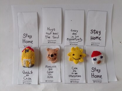 El patrón trae el conjunto de 4 (Postales para el corazón) para que las hagas e imprimas Son los siguientes: * Postal "Sol": "Cada día es una oportunidad" * Postales para el corazón "Oso": "Abrazos que curan el alma" * Postales para el corazón "Casa pequeña": "Quédate en casa" * Postal "Casa Amarilla": "Quédate en casa"