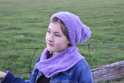 Yarn: Knitpicks Wonderfluff, 70% Baby Alpaca , 7% Merino Wool , 23% Nylon, 50 grams/142 yards. Hat: 1 skein, shown in Larkspur Heather, Cowl: 1 Skein shown in Larkspur Heather.