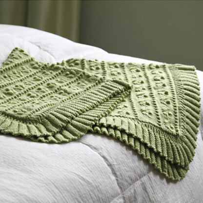 Sweet sewn-on ruffles and textured rosebuds make Tea Rose Baby Blanket a darling baby project in soft and machine-washable Valley Superwash DK. Perfect for a special little one in your life, this would be a great baby shower gift.