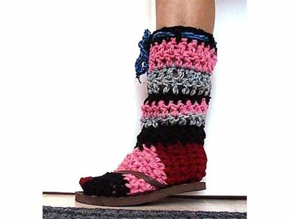 You can makes these easy boot style slippers, which you can wear with FLIP FLOP SANDALS, if you want to wear them outside. The front of the slipper has a separation between the toes for easy slip on of flip-flops.