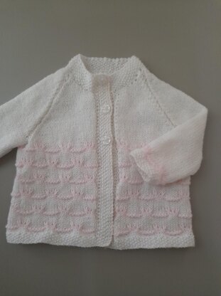 4ply Baby cardigan knitted in one piece to armholes with contrasting slip stitch design, age 0-6 months, 18" chest. Actual measurements chest 20", length 11", sleeves 5"