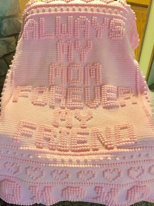 Blanket reads ALWAYS MY MOM FOREVER MY FRIEND