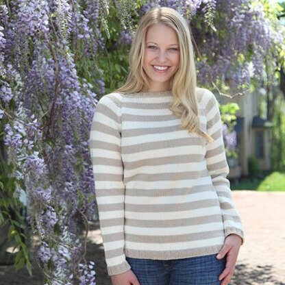 The French Vanilla jumper from Valley Yarns is an easygoing top-down raglan with nautical stripes and neutral shades. Knit in a cotton blend yarn, this jumper is a great piece for transitional seasons with its long sleeves and lightweight feel.