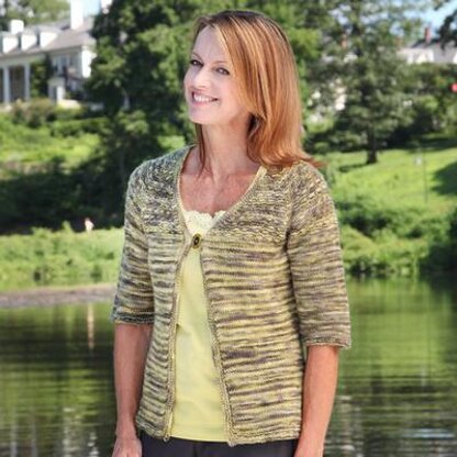 The Papyrus Cardigan from Valley Yarns is a single-button cardigan knit in one piece with very little finishing. Reedy, textured stitch motifs are built into the raglan sleeve shaping of this classic, bottom-up v-neck cardigan.