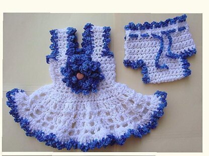 How to crochet a baby girl short dress and diaper cover set. Crochet Pattern - Baby Girl Dress - Newborn to age 4, Diaper Cover, Flower, Easy, Optional picot edge, children's clothing, sundress set