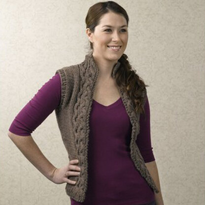 The Eva Vest is a lovely open-front vest that features mirrored cables, waist shaping, and a stand-up collar. This bottom-up project is a fun, fast project to knit. Note: Cable pattern is both charted and written out.