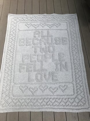 This pattern was made with Caron One Pound & G hook. Finished size is 48 x 61. Yarn choice, hook size and tension may alter finished size.