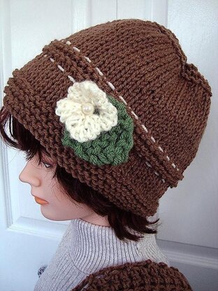KNIT HAT - Knit flower and leaf - pdf instant download pattern, baby hat, children, teens, women, #680, Easy beginner level