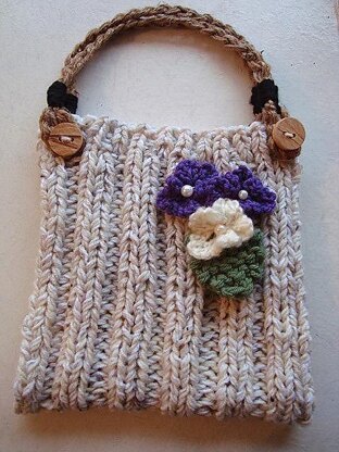 Pattern includes: Purse instructions: Bag measures 10 inches by 11 inches (can easily be made larger or smaller Pattern for making bag handles Pattern for knitting a flower Pattern for knitting a leaf