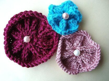 KNITTING PATTERN, flower embellishment for trim on hats, purses, bags, scarves, barrettes, headbands, etc.