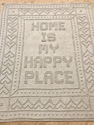 Blanket reads HOME IS MY HAPPY PLACE. Blanket in photo was made with Caron One Pound & G hook. Yarn choice, hook size and tension may alter finished size.