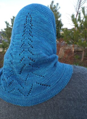 Folded hems, decreases and short row shaping create a gently-shaped accessory that can be worn as a cowl or a snug hood.