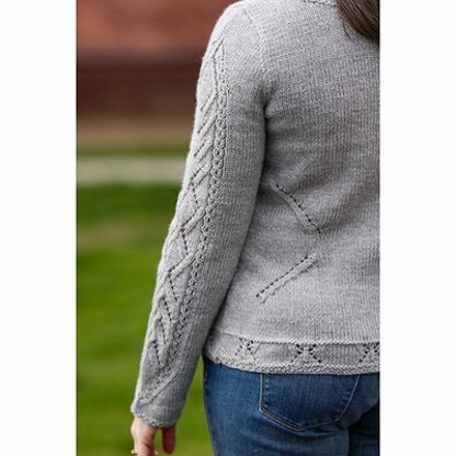 Yarn Requirements: 9 (10, 12, 13) (14, 14, 15) balls Valley Yarns Northfield (70% Merino/ 20% Baby Alpaca/ 10% Silk; 50g/124yd) shown in Light Gray