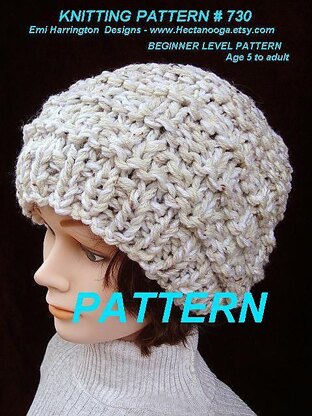 KNITTING PATTERN, this is a knitting pattern to make an easy beginner hat. THIS IS A PATTERN, NOT THE FINISHED ITEM.Make this very easy hat using one pair of straight needles. Quick and easy.. the perfect project for beginners. You will need to know how to cast on, but a video link will be provided from my youtube tutorial channel Hectanooga1, how to do the knit stitch, and how to purl. Also how to cast off, and this is explained in the pattern. I have written and designed this pattern to be as simple as possible. As well, I write my patterns without abbreviations, so they are easy to read and to follow.