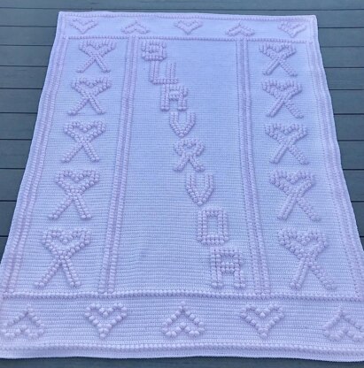 Blanket made with Caron One Pound & G hook. Finished size is 49 x 65. Yarn choice, hook size and tension may alter finished size