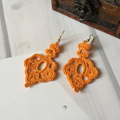 - PLEASE NOTE WHAT SUPLIES YOU WILL NEED! Cotton yarn - i used YarnArt Violet yarn, Orange color Crochet hook, jewelry hooks, OVAL JEWELRY BASE 1*1.5 cm
