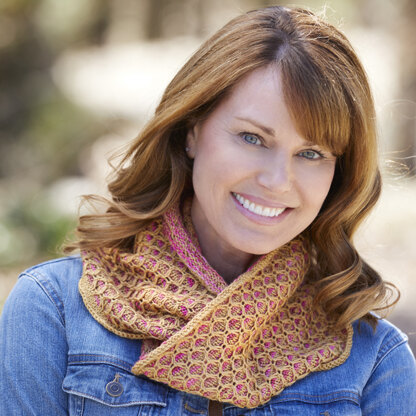 Lantana Cowl from Valley Yarns is worked in a slip-stitch colourwork pattern, and this double-wrap cowl takes full advantage of Charlemont’s luxurious softness as well as its rich colour palette. This fingering weight yarn is a stunning blend of superwash Merino, Mulberry silk, and polyamide. The Lantana Cowl is worked in the round and can be wrapped twice around your neck. This knitting project is suitable for intermediate knitters. The cable and slip stitch pattern is both charted and written out.