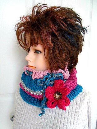 Women's Knit Cowl Scarf- KNITTING PATTERN- fits teens and women, Easy Beginner - Flat Knit Pattern, #878, Knit flower pattern included. MORE KNITTING PATTERNS HERE: https://www.etsy.com/shop/HatAndScarfPatterns?section_id=13973190&ref=shopsection_leftnav_4 and HERE: https://www.etsy.com/shop/Hectanooga?section_id=5769401&ref=shopsection_leftnav_6