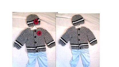 Baby Sweater Set, Hat and Jacket, Unisex CROCHET PATTERN, 3 sizes from newborn to 1 yr., patterns for kids, babies, children #891