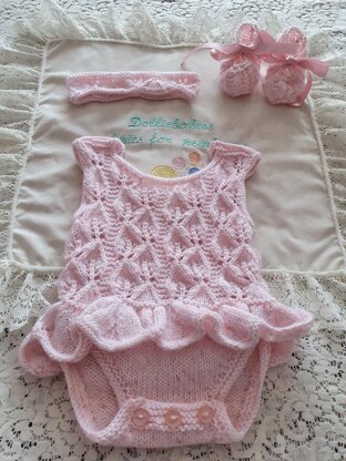 Instructions for a cute little shoulder fastening dress vest, shoes, and a headband.