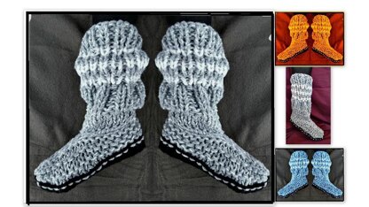 Knitting Pattern for Sock Slippers, Easy Beginner Level, worked flat on straight needles!! Easy assembly, simple technique!