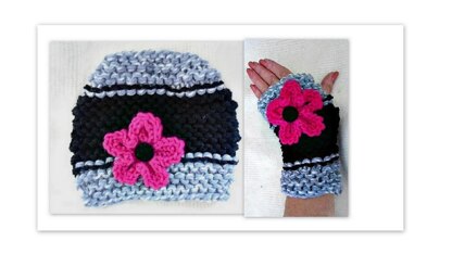 Knit Hat and Fingerless Gloves, KNITTING PATTERN # 925, Flower pattern also included, age 5 to Adult, for girls and women