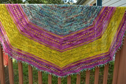 Are you thinking about the cooler weather? Well you should be and I am here to help with your wardrobe! Everyone, and I mean everyone, needs a big statement, every day, go to Shawl for fall. This is a Mystery Knit a Long (MKAL) and will be broken down into 5 Clues. Clue 1 will span 2 weeks and the rest will be weekly. At the end I will compile each clue and make one file for the entire pattern. I picked my variegated color first, and then picked out two colors from it, for my coordinating semi solids. I would have at least 90gr or 360yds of each color on hand. You may go with 4 colors and split up one of your semi solids into about 30gr and 60gr. Clue 1 will begin with your variegated color. I am SERIOUSLY so super excited for everyone to work this Shawl up! I have to say this is my favorite piece that I have designed to date.