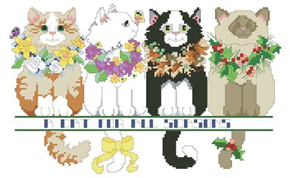 By Linda Gillum. Four adorable kittens wearing seasonally appropriate necklaces of colorful flowers to celebrate the four seasons are all together in one picture. They are so cute and cuddly that you will want to have them in a cheery spot in your home.