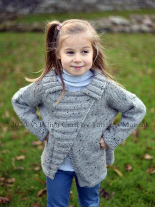 Knitting pattern for A-factor cardigan is easy to follow and suitable for advanced beginners. PDF pattern has picture, sizes diagram and very detailed written instruction for sizes from baby through teen 15-16 years.