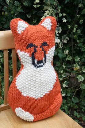 Snuggle up on the sofa with this fabulous fox pillow, he is so soft and cuddly! The pillow stands 23.5inches high (to the top of the ears) and 13.5inches wide (across the tummy). He is knit in 3 pieces using intarsia for the colourwork, stockinette stitch and seed stitch for texture. The detailed written pattern includes row by row instructions, photographs and charts. The fox is knit flat on two needles using Super Chunky/Super Bulky yarn. Change the Burnt Orange shade for Grey and you could make him a wolf friend!