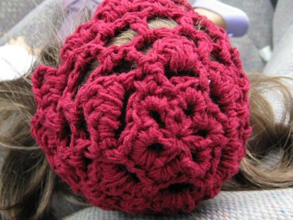 It starts with a hexagon at the top of the hat & works downward in an easy lace pattern. It takes only a few yards of yarn & a few minutes of your time. It can be easily resized to fit various other size dolls.
