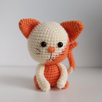 ✩ Size: the cat is approx. 4.25 inches tall. Materials: sport weight yarn in two colors (white and colored (red, black, blue)), I use Kartopu Gonca 300 mt 100 g; crochet hook 2.5 mm; yarn needle; fiberfill for stuffing; scissors; eyes, brown or black embroidery thread.
