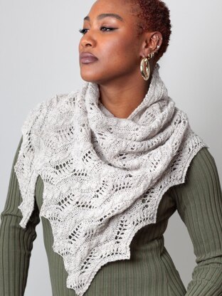 This beautiful, textured shawl in three sizes (petite/medium/tall) provides the perfect swirl of richness for holiday dress-up events and beyond. Don’t be fooled by its complex appearance—the cable and lace pattern is composed entirely of simple sts and is much easier to knit than it looks! Knit side to side from the wide end, just one chart (or row-by-row written instructions) is all you need to create this eye-popping piece. Substituting yarn and/or needles may result in an overall variation in size, drape, and yardage requirement.